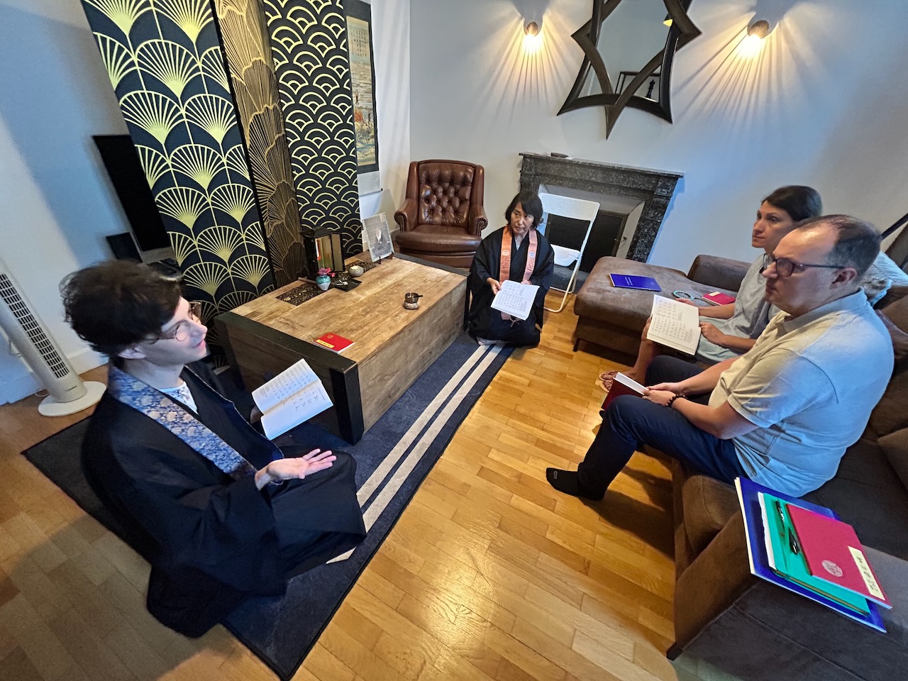 In a French village near the Swiss border, a small group met to discuss Buddhism and Shinran Shonin. This month, Rev. Ryoko Osa from Berkeley Higashi Honganji in California, and I travelled there to help and support them.